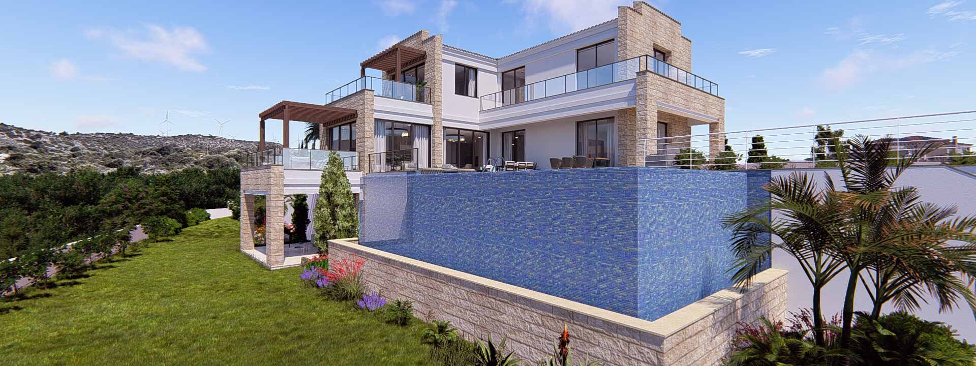 برای فروش ویلا 1 طبقه با متراژ 506 متر مربع در پافوس. خانه شامل 5 اتاق خواب. ویلا دارای طراحی داخلی {همچنین استخر, پارکینگ اختصاصی.