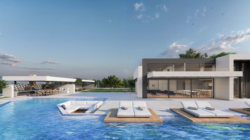 ویلا دارای طراحی داخلی {همچنین باطریهای خورشیدی برای گرم کردن آب, کولر, استخر, پارکینگ اختصاصی, باغ, چمن, باربیکیو سیستم گرمایشی, انبار.