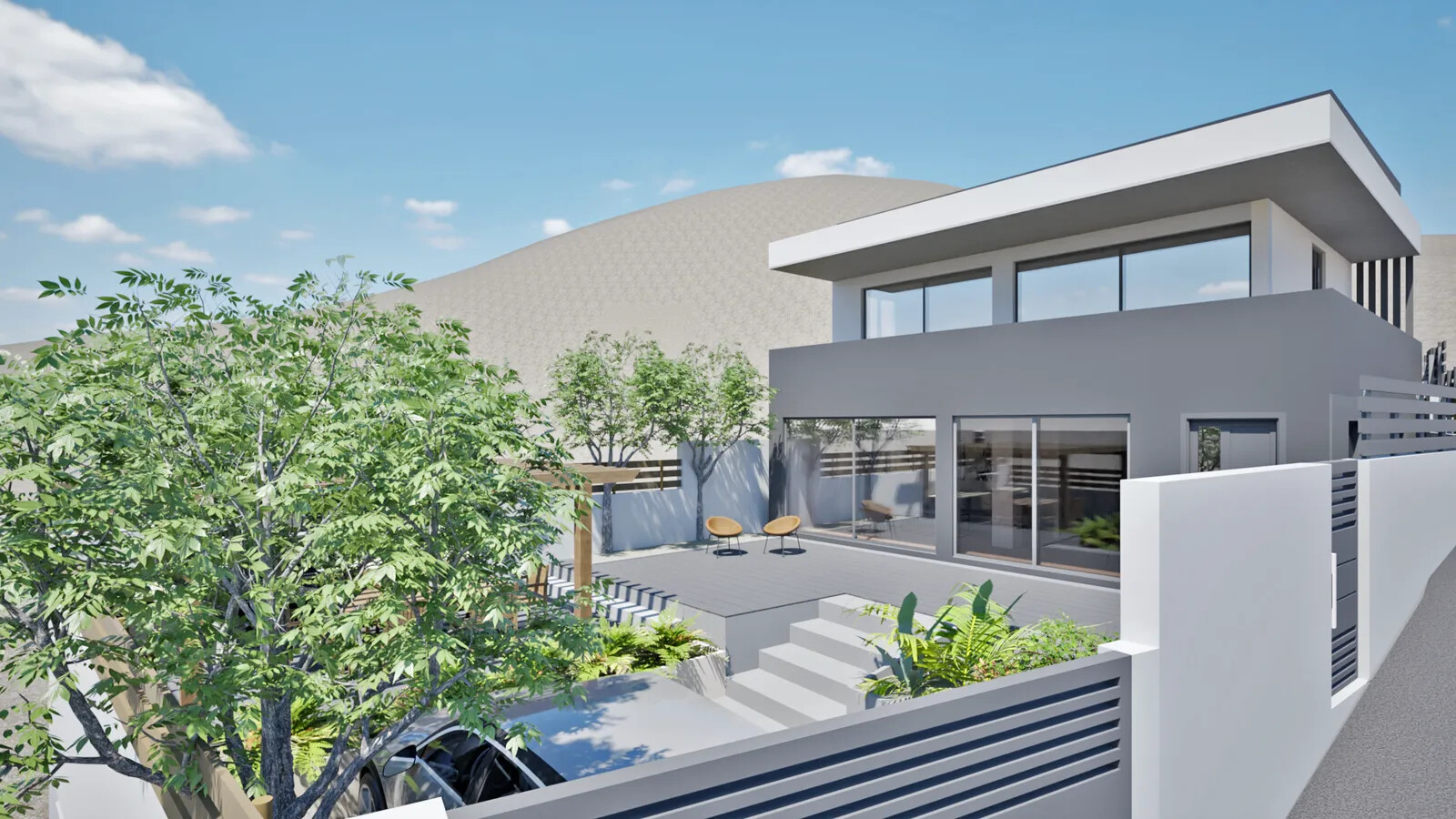 خانه دارای طرح جلو دارای عالی به دریا, به کوه, {همچنین باطریهای خورشیدی برای گرم کردن آب, کولر, پارکینگ اختصاصی, باغ, سیستم گرمایشی.