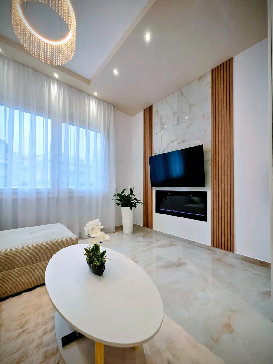 اپارتمان دارای طراحی داخلی {همچنین مبلمان, شومینه, کولر, آسانسور, انبار.
